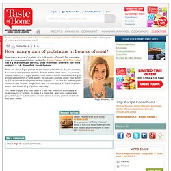 • Most cuts of beef – 7 grams of protein per ounce Chicken • Chicken breast, 3.5 oz - 30 grams protein • Chicken thigh – 10 grams (for average size) • Drumstick – 11 grams • Wing – 6 grams • Chicken meat, cooked, 4 oz – 35 grams ... Read More